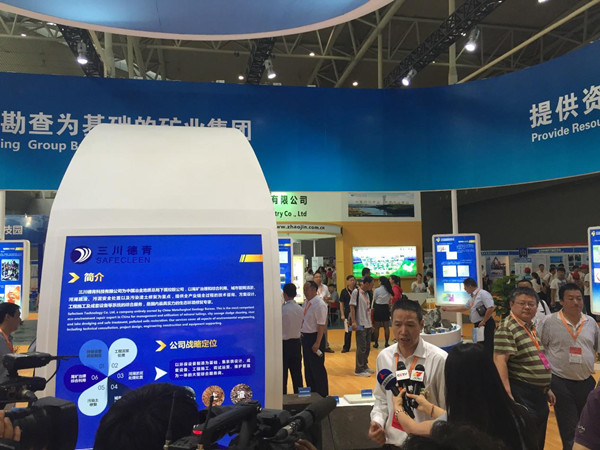 7月13日上午会议开幕,总局副局长琚宜太以《共赢 共进 共享》为主题作重要讲话。开幕式结束后,琚宜太副局长陪同大会相关领导参观了总局展台,并介绍了三川德青科技有限公司的相关情况和尾矿治理业务的相关情况;会后公司常征副总经理也在三川德青展台前接受新疆晚报、环保与生活杂志社的采访。下午,举办了一带一路战略下地勘企业发展新途径—中国冶金地质总局援疆成果展示暨产业产品和合作项目推介会,会中常征副总经理以《三川德青科技有限公司企业介绍及产品展示》为主题作了大会报告,并重点介绍了尾矿治理方面的突出业绩。