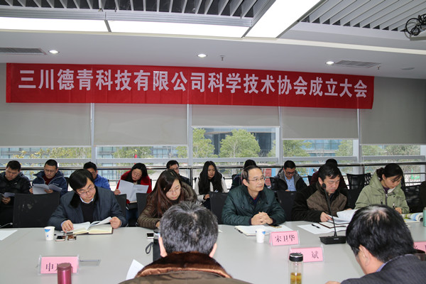 1月13日下午,三川德青科学技术协会成立大会在武汉未来科技城顺利召开。公司领导班子成员、全体科协会员参加会议。武汉市科学技术协会陈光勇副主席、宋卫华部长一行出席会议。 会上科协筹备小组介绍了三川德青科协筹备工作情况,由武汉市科协领导宣读关于同意成立三川德青科协的文件,并表决通过了协会章程、协会领导机构人选。会议最后,武汉市科协领导对公司成立科协开展相关工作提出了几点建议。