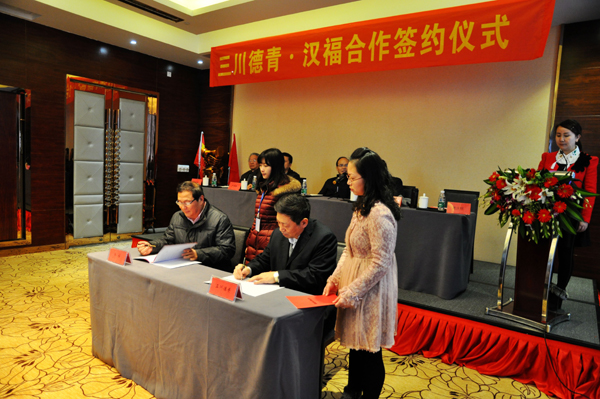 1月8日上午,三川德青科技有限公司与武汉汉福专用车有限公司合作签约仪式在武汉举行,总局局长助理、“三川德青”公司董事长唐庆明、武汉汉福专用车公司总经理谢涛、武汉市委组织部朱部长、武汉市经信委严主任、武汉市东西湖区黄区长、武汉市汽车协会张会长等相关单位领导出席签约仪式。此次合作签约成功,代表三川德青公司正式进入专用车生产制造领域,为城市管网环保设备的发展提供了一个新的专业平台,可有效形成新的合作共赢大好局面。