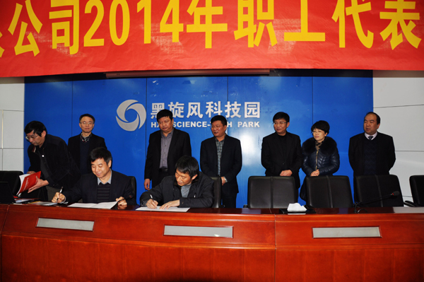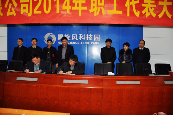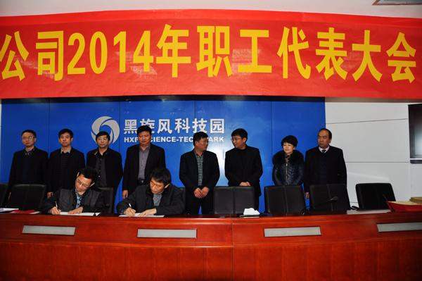会议,审议通过了《关于对经营班子工作报告的决议》;表彰了2013年度的先进生产工作者;张民代表公司分别与四个产业公司单位负责人签订了2014年度经营业绩责任书。