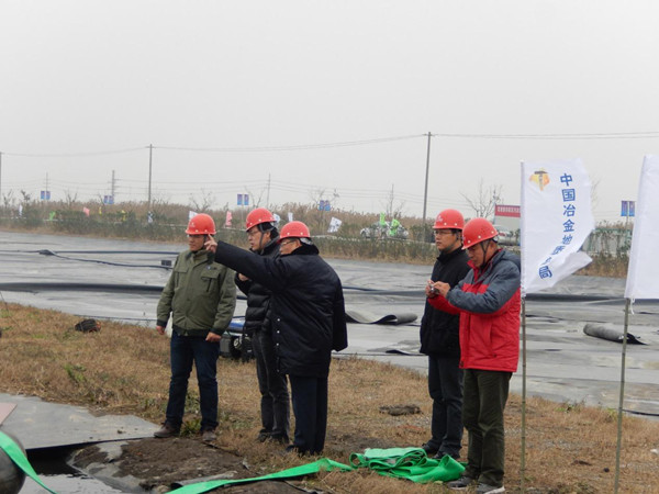 2014年12月11日上午9点19分整,我公司老港暂存库区污泥原位固化处置试点工程正式拉开帷幕。业主单位上海排水管理处、监理单位上海宏波工程咨询管理有限公司、老港暂存库区运营单位上海环境工程技术有限公司相关领导莅临施工现场指导工作,并听取项目施工安排。上海排水处处长孙明耀对现场工作给予充分认可,要求严格落实安全文明施工,强化现场管理,保证施工进度和施工质量,并对目前工程施工中遇到的问题及困难进行现场协调解决。