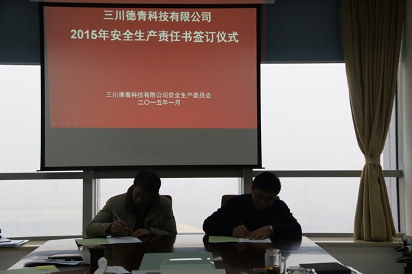 2015年1月6日,三川德青科技有限公司召开了2015年第一次安委会。会议总结了2014年度安全生产工作,通报了2014年安全生产综合考核结果,讨论通过了《安全生产费用管理办法》(修订)等办法。公司总经理张民与各产业公司主要负责人签订了2015年安全生产目标责任书。
