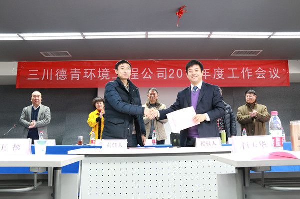 池总传达了公司一届一次职代会暨2015年工作会议精神,重点学习了公司总经理张民的2015年度工作报告和董事长的讲话。环境公司总经理常征作了题为《夯实基础 增速提质 努力完成2015年经营目标》的报告,全面梳理了2014年的主要工作,剖析了存在的主要问题,明确了2015年工作的总体思路、目标任务和重点工作,详述了2015年的主要工作安排。常征总经理代表环境工程公司分别与五个单元和部门负责人签订了《2015年度授权经营业绩责任书》。