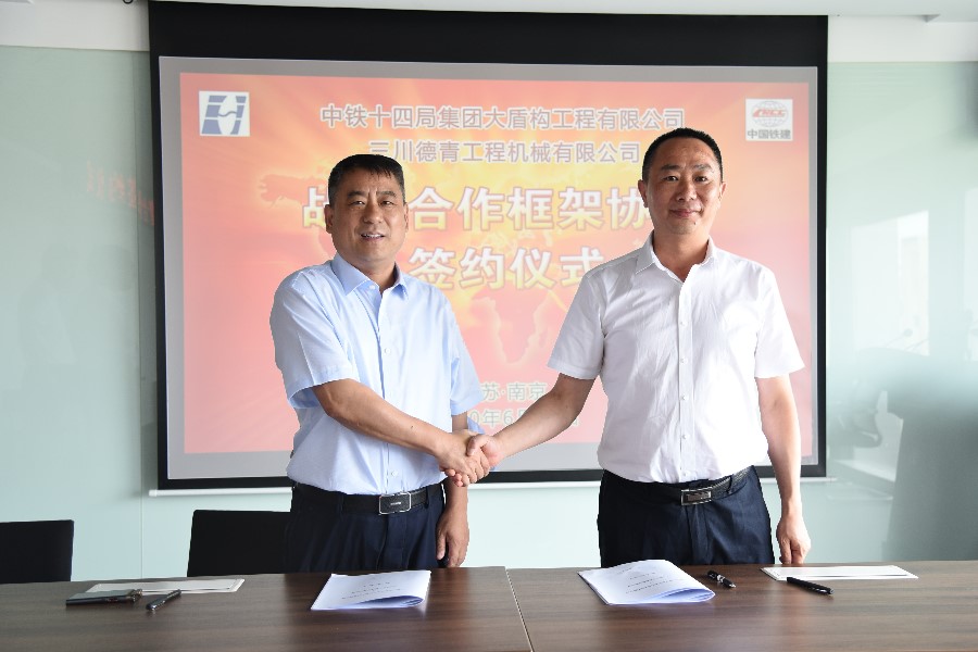 6月17日,三川德青工程机械有限公司与中铁十四局集团大盾构工程有限公司战略合作框架协议签约仪式在江苏南京举行。双方本着“平等自愿、信任合作”的原则,形成强强联合,充分发挥施工与装备优势,达到相互促进、互利互惠、共同发展的目的,通过共同打造绿色环保泥水盾构工程,提升各自竞争力,为行业发展做出贡献。