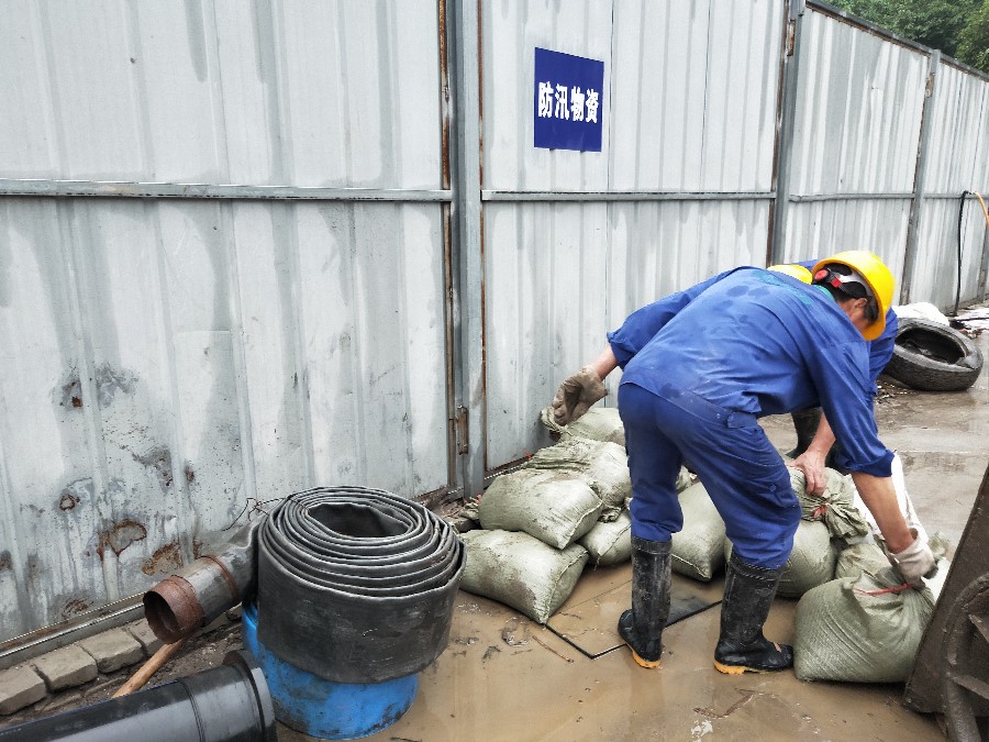 受持续降雨影响,湖北荆州城区汛情告急、形势严峻,公司荆州项目部因地势较低、临近长江,内涝严重,项目部积水深度达10公分,公司党委书记、董事长陶金岭了解情况后,第一时间对荆州项目防汛抢险工作作出指示,要求项目部确保抢险人员自身安全,有条不紊开展抢险工作,争取尽快排完积水恢复生产运行。项目部多措施并举进行治涝自救,抽调精兵强将,迅速组织成立14人的防汛排涝抢险突击队,针对区域内涝的特点,采取外截内排的方式,加固场区桥边堤坝,装填使用沙包、编织袋150余个进行截水,疏通排水管沟,场区被淹后紧急投入2台抽水泵进行排水,加强电路设备检查,防范安全事故发生。