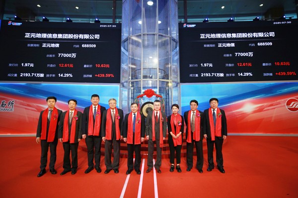 7月30日,中国冶金地质总局所属正元地理信息集团股份有限公司(股票简称“正元地信”,股票代码688509)在上海证券交易所鸣锣上市,地理信息行业为资本市场再添新军。正元地信本次发行股票数量1.7亿股。截至午间收盘,公司股价收报于8.75元/股,涨幅达344.16%。